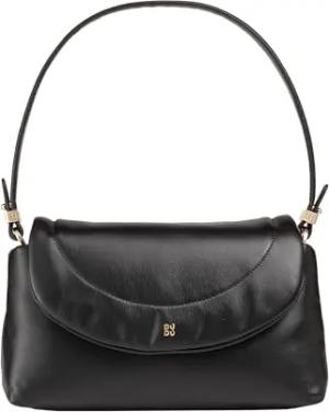 Damen Tasche aus weichem Leder, gepolsterte Umhängetasche, Gesteppte Handtasche mit abnehmbarem Riemen und Überschlag Schwarz Rose