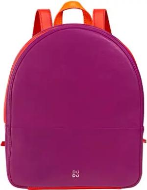 Rucksack Damen Bunt Sommerlich aus weichem Leder Rucksack Multicolor mit doppeltem Reißverschlussfach Fuchsia