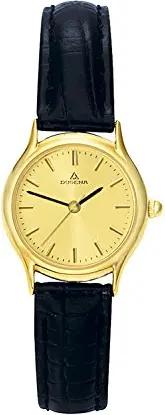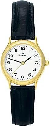 Damen Quarz-Armbanduhr, Saphirglas, Lederarmband, Zenit, Schwarz/Gold, 4460366