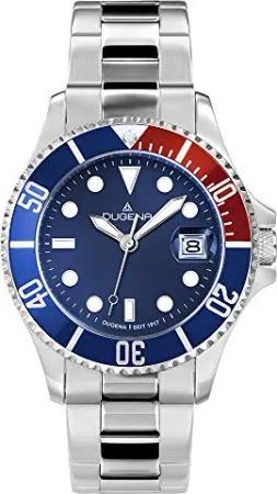 Herren Quarz-Armbanduhr, Schraubkrone, Wasserdicht bis 30 bar, Diver, Silber/Blau/Rot, 4460774