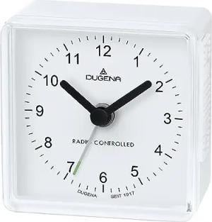 Reisewecker, Funkwecker aus Kunststoff, modern, mit abgerundeten Ecken und ansteigendem Wecksignal (Crescendo-Alarm), 6 x 6 cm, Farbe:Weiß