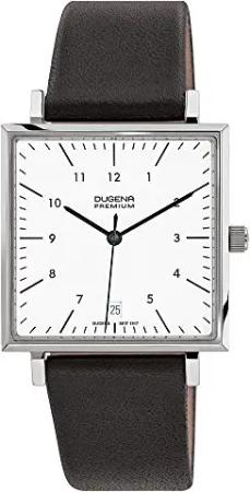 Unisex Quarz-Armbanduhr, Saphirglas, Lederarmband, Dessau Carrée, Schwarz/Silber, 7000142