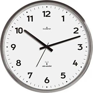 Wanduhr 4277414, Funkuhrwerk, weißes Zifferblatt, arabische Ziffern, Metallgehäuse, 33 cm, automatische Zeitumstellung
