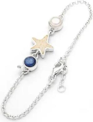 Armband SANDSEESTERN Perle Kyanit Strandsand Silber 925/- poliert ca 16,5cm + 2cm Verlängerung (A1845)