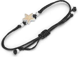 Cotton-Armband schwarz mit Sandseestern und Silberkügelchen, längenverstellbar 925er Sterling-Silber, A1682
