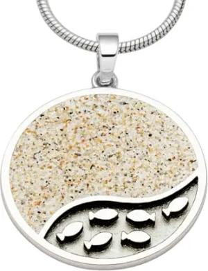 Schmuck Anhänger Strandwellen PILSUMER LEUCHTTURM, Strandsand, Bernsteinsand, Silber 925/- rhod. 15mm (P4849)