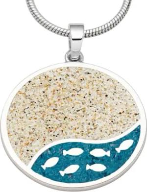 Schmuck Anhänger FISCHSCHWARM 25 mm Strandsand, Steinsand blau, Silber 925/- rhodiniert (P4853)