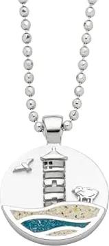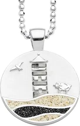 Schmuck Anhänger Strandwellen PILSUMER LEUCHTTURM, Strandsand, Steinsand (Kyanit), Silber 925/- rhod. 15mm (P4848)