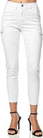 Damen Cargo Hose Slim Fit Denim Chunkyrayan 753 White 42 (XL)