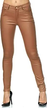 Damen Hose Kunstleder Push Up Effekt Chunkyrayan E621-3 Brown-34 (XS)