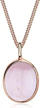 Halskette Damen Oval Solitär Anhänger mit Rosenquarz in 925 Sterling Silber Rosévergoldet