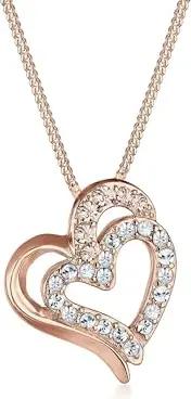 Halskette Silber 925 Rosé 18K Vergoldet Doppel Herzen Damen Kette Kristall Schmuck Geschenke für Frauen Mädchen Mama Freundin, Silberkette Länge 45cm