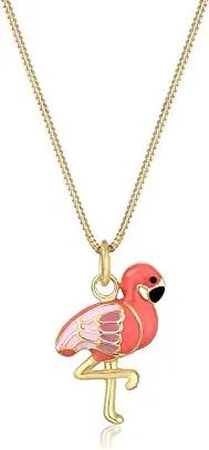 Halskette Silber 925 Vergoldet 24K Flamingo Anhänger Damen Kette Emaille, Schmuck Geschenke für Frauen Mädchen Mama Freundin, Silberkette Länge 45cm