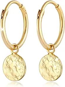 Ohrringe Damen Creolen Plättchen Coin Anhänger Organic in 925 Sterling Silber