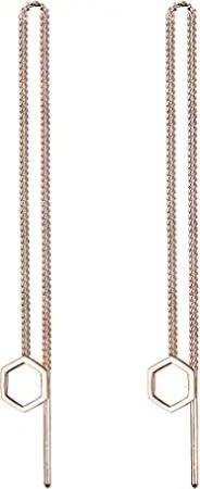 Ohrringe Damen Ketten Hänger mit Hexagon im Geo Minimal Look in 925 Sterling Silber Rosé vergoldet