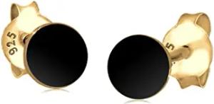 Ohrringe Damen Ohrstecker Kreis Basic Geo mit Emaille Schwarz in 925 Sterling Silber Vergoldet