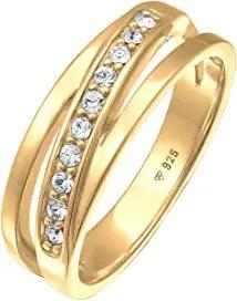 Ring Damen Wickel X Kreuz mit Zirkonia Kristallen in 925 Sterling Silber Vergoldet
