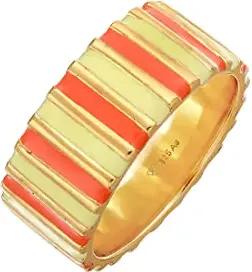 Ring Damen Band Rillen mit Emaille Gelb und Orange in 925 Sterling Silber Vergoldet