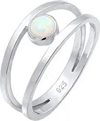Ring Damen Bandring Zweireihig Synthetischer Opal in 925 Sterling Silber