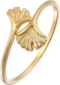 Ring Damen Ginkgo Blatt Natur Offen Verstellbar in 375 Gelbgold