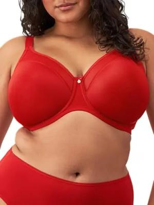 Damen Morgan Gebänderter Komfort und Unterstützung. Dreiteilige Körbchen, Seitenrahmen, Stretch-Spitze Einfarbiger Dd + BHS BH mit voller Abdeckung, Halbtransparent, Rot (Haute Red), 90GG