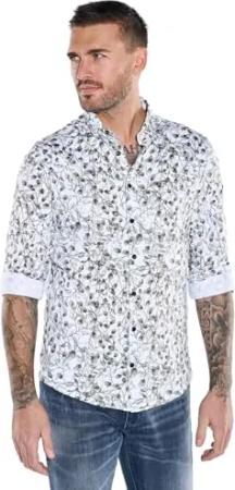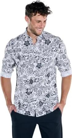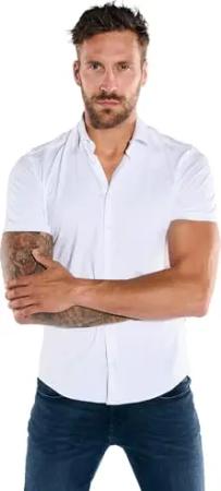 Herren Herren Kurzarm-Hemd Gemustert, Reinweiss, 39255, Reinweiss in Größe 3XL