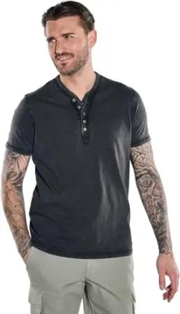 Herren Herren Henley-Shirt Uni, Anthrazit, 38961, Anthrazit in Größe M