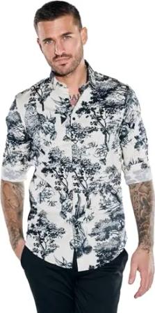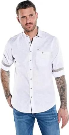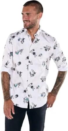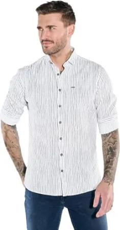 Herren Herren Langarm-Hemd Gemustert, Beige, 38007, Beige in Größe M