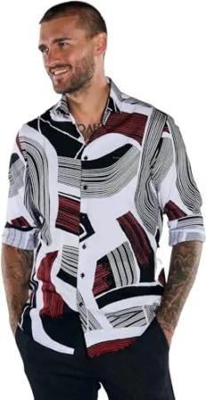 Herren Herren Langarm-Hemd Gemustert, Rot, 38003, Rot in Größe XXL