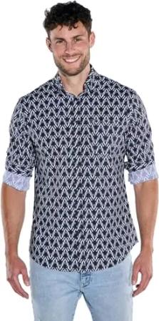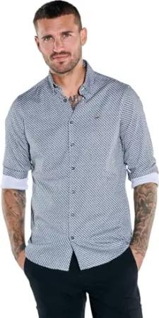 Herren Herren Langarm-Hemd Gemustert, Marineblau, 39120, Marineblau in Größe M