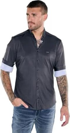 Herren Herren Kurzarm-Hemd gestreift, Anthrazit, 38520, Anthrazit in Größe XXL