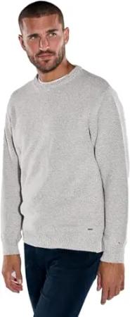 Herren Herren Pullover aus Italienischer Baumwolle, Silbergrau, 38211, Silbergrau in Größe L