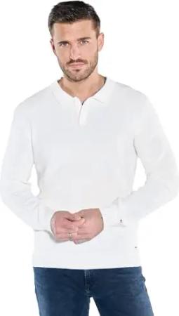 Herren Herren Pullover mit Polo-Kragen, Reinweiss, 38679, Reinweiss in Größe XL