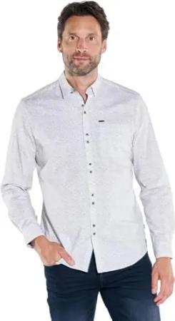 Herren Herren Langarm-Hemd Gemustert, Reinweiss, 37272, Reinweiss in Größe L