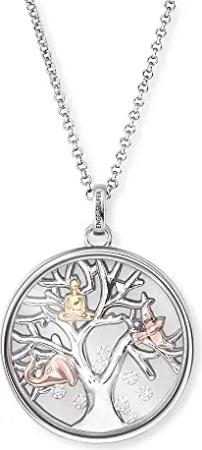 Damen Halskette Sterling Silber Lebensbaum Anhänger, Karabinerverschluss, in drei Längen verstellbar, nickelfrei
