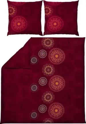 Bettwäsche, Bettgarnitur Flanell - Mandala - mollig warm, temperaturregulierend, mit praktischem Reißverschluss - Bordeaux Größe 80x80 cm / 240x220 cm