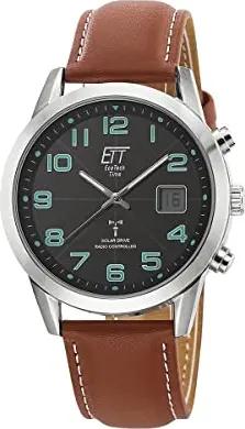 Funk Solar Herren Uhr Analog mit digitalem Datum mit Leder Armband EGS-11499-22L