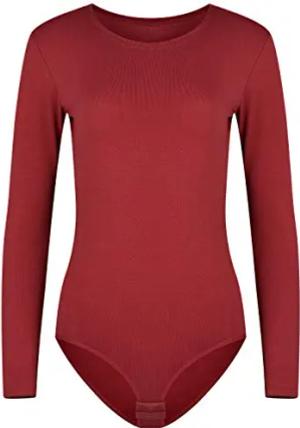 Damen-Body I Bodysuit mit Rundhals für Frauen I Langarm-Body in verschiedenen Farben I Optimale Alternative für Sport & Freizeit L Bordeaux