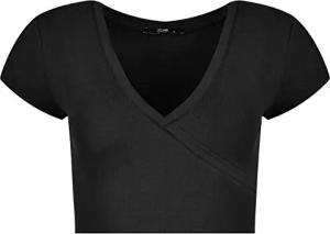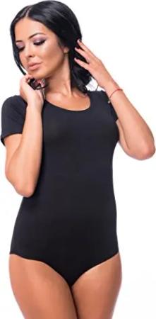 Damen Body Kurzarm, T-Shirt Bodysuit aus Baumwolle, Kurzarm-Body Elegant, Damen Unterwäsche schwarz XS