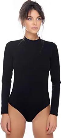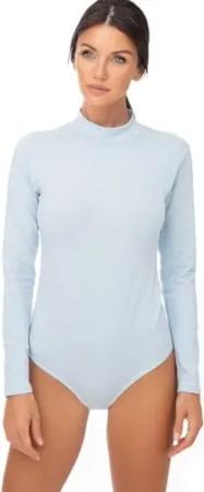 Damen Body langarm I blickdichter Bodysuit mit Halbkragen für Frauen I Langarmbody aus Baumwolle I Women Body Shaper I Jumpsuit XL Hellblau