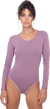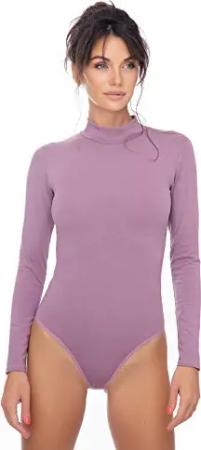 Damen Body langarm I blickdichter Bodysuit mit Halbkragen für Frauen I Langarmbody aus Baumwolle I Women Body Shaper I Jumpsuit S Lila