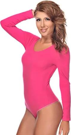 Damen Body Langarm | Stringbody aus Baumwolle-Elasthan mir Rundhals | Langarmbody mit Verschluß-Haken | Blickdichter Bodysuit | Unterzieh-Body L pink