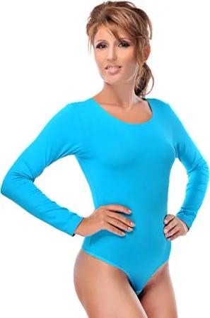 Damen Body Langarm | Stringbody aus Baumwolle-Elasthan mir Rundhals | Langarmbody mit Verschluß-Haken | Blickdichter Bodysuit | Unterzieh-Body XL türkis