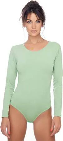 Damen Body Langarm | Stringbody aus Baumwolle-Elasthan mir Rundhals | Langarmbody mit Verschluß-Haken | Blickdichter Bodysuit | Unterzieh-Body XXL grün