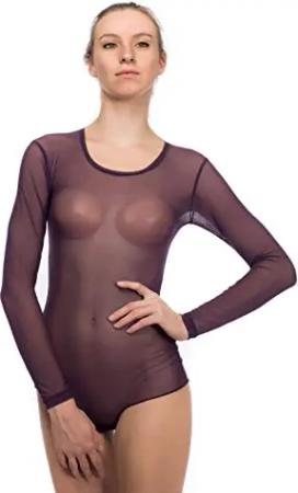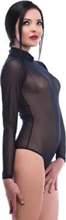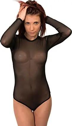 Damen Body Langarm Stringbody transparent Haut M