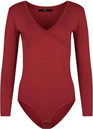 Damen Body Langarmbody mit V-Dekolleté für Frauen XXL Bordeaux