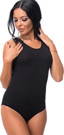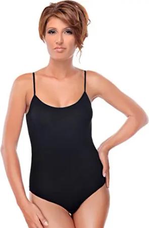 Damen-Body aus Baumwolle mit Spagettiträgern I Bodysuit Women I 3 Verschluss Haken I als Tanz-Body für Frauen geeignet M schwarz