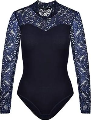 Damen Body mit Spitzenärmeln und Halbkragen dunkelblau M