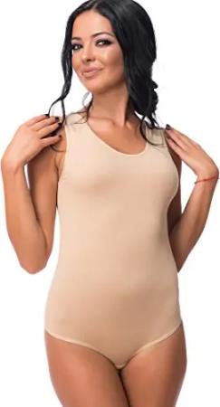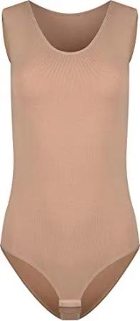 Damenbody l Damen Overall Bodysuit mit Rundhals l breite Träger l Verschluß-Haken l Unterzieh-Body mit optimaler Passform l sportlicher Damen-Body L Hellbraun
