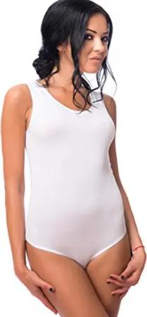 Damen Body String | ärmelloser Bodysuit aus Baumwolle-Elsthan | Stringbody Trägertop | Unterziehbody mit optimaler Passform | breite Träger | Verschluß-Haken | sportlicher Damenbody Weiß L
